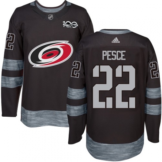 Home>NHL>Carolina Hurricanes>Brett Pesce>Men's Adidas Carolina Hurricanes #22 Brett Pesce Premier Black 1917-2017 100th Anniversary NHL Jersey
