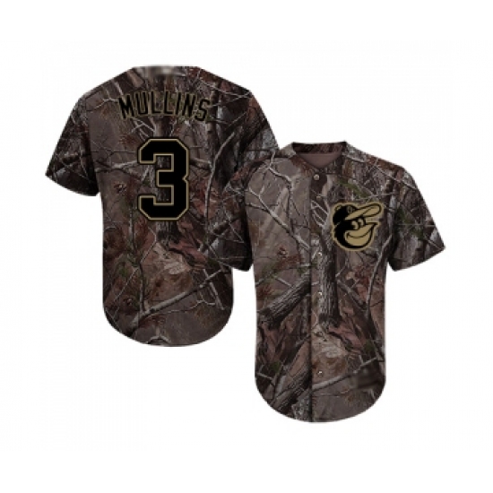 >Men's Baltimore Orioles #3 Cedric Mullins Authentic Camo Realtree Collection Flex Base Baseball Jersey