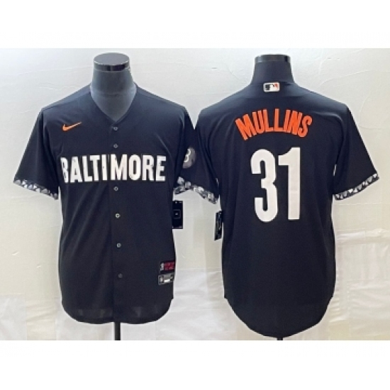 Men's Baltimore Orioles #31 Cedric Mullins Black 2023 City Connect Cool Base Stitched Jersey 1