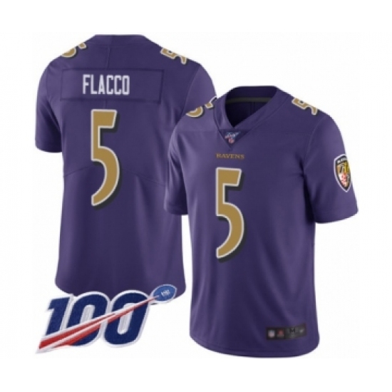 Men's Baltimore Ravens #5 Joe Flacco Purple Team Color Vapor Untouchable Limited Player 100th Season Football Jersey