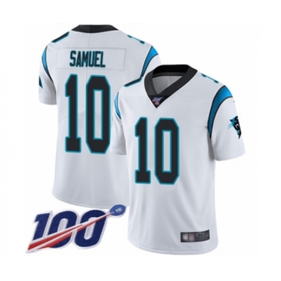 >Men's Carolina Panthers #10 Curtis Samuel White Vapor Untouchable Limited Player 100th Season Football Jersey