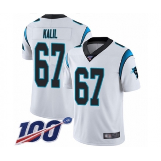 Men's Carolina Panthers #67 Ryan Kalil White Vapor Untouchable Limited Player 100th Season Football Jersey