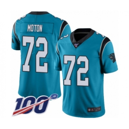 Men's Carolina Panthers #72 Taylor Moton Limited Blue Rush Vapor Untouchable 100th Season Football Jersey