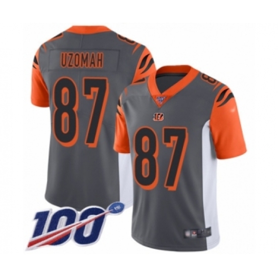 >Men's Cincinnati Bengals #87 C.J. Uzomah Limited Silver Inverted Legend 100th Season Football Jersey