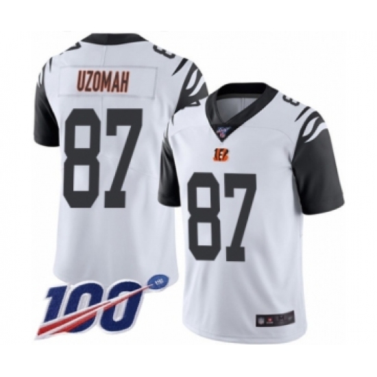 >Men's Cincinnati Bengals #87 C.J. Uzomah Limited White Rush Vapor Untouchable 100th Season Football Jersey