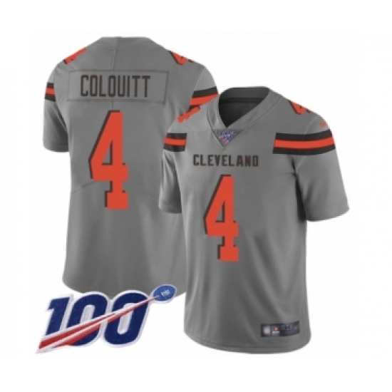 >Men's Cleveland Browns #4 Britton Colquitt Limited Gray Inverted Legend 100th Season Football Jersey