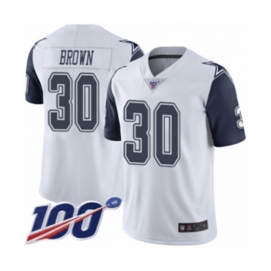 >Men's Dallas Cowboys #30 Anthony Brown Limited White Rush Vapor Untouchable 100th Season Football Jersey