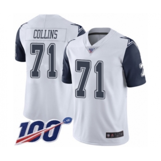 >Men's Dallas Cowboys #71 La'el Collins Limited White Rush Vapor Untouchable 100th Season Football Jersey