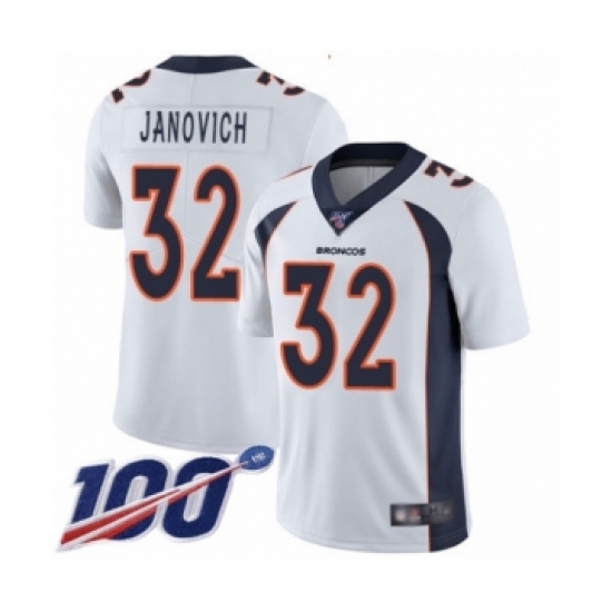 Men's Denver Broncos #32 Andy Janovich White Vapor Untouchable Limited Player 100th Season Football Jersey