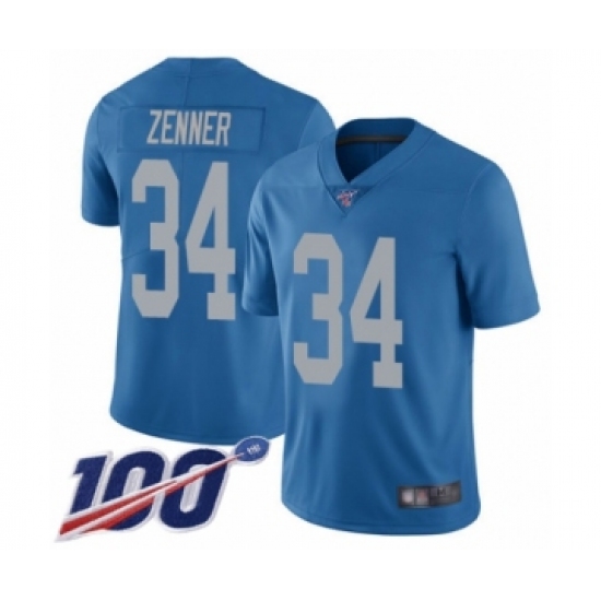 >Men's Detroit Lions #34 Zach Zenner Blue Alternate Vapor Untouchable Limited Player 100th Season Football Jersey
