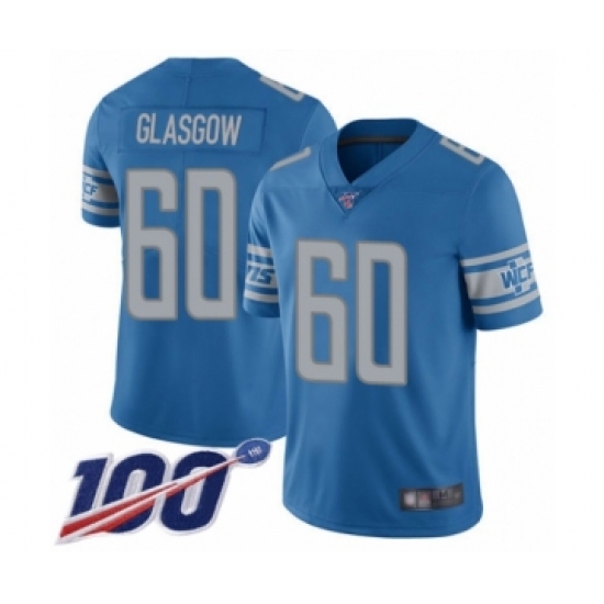 Men's Detroit Lions #60 Graham Glasgow Blue Team Color Vapor Untouchable Limited Player 100th Season Football Jersey