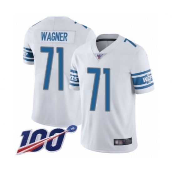 >Men's Detroit Lions #71 Ricky Wagner White Vapor Untouchable Limited Player 100th Season Football Jersey