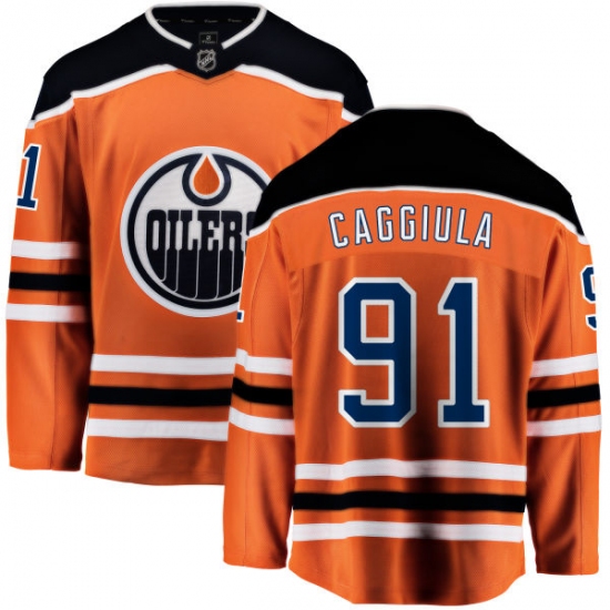 Home>NHL>Edmonton Oilers>Drake Caggiula>Men's Edmonton Oilers #91 Drake Caggiula Fanatics Branded Orange Home Breakaway NHL Jersey