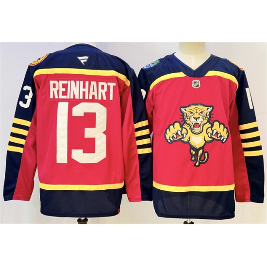 Men's Florida Panthers #13 Sam Reinhart Red 2023 Stanley Cup Final Stitched Jersey