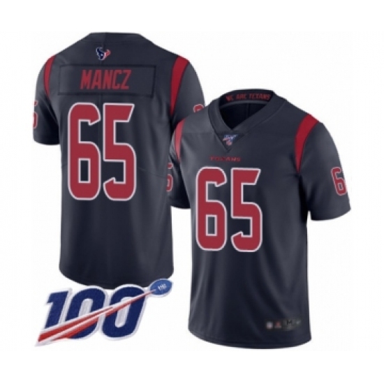>Men's Houston Texans #65 Greg Mancz Limited Navy Blue Rush Vapor Untouchable 100th Season Football Jersey