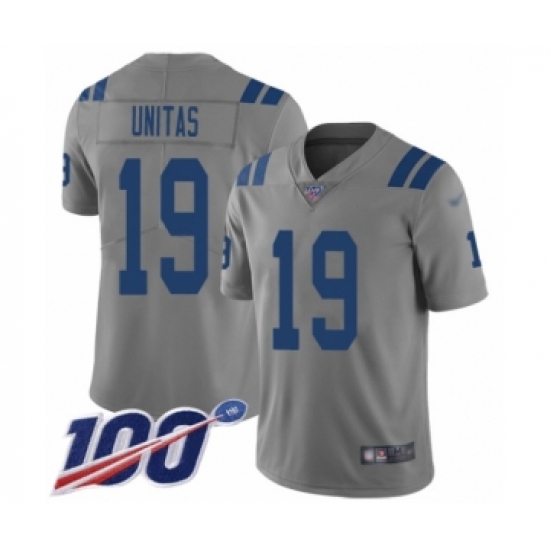 Men's Indianapolis Colts #19 Johnny Unitas Limited Gray Inverted Legend 100th Season Football Jersey