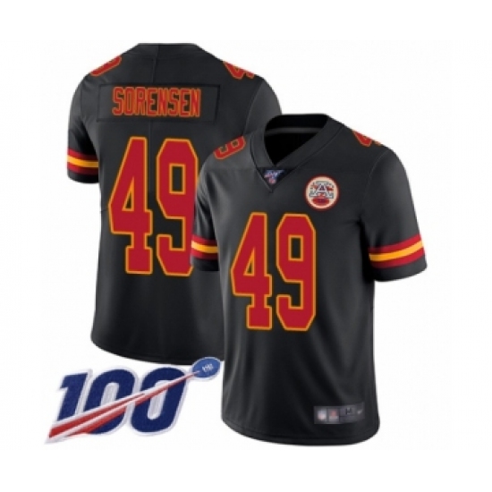 >Men's Kansas City Chiefs #49 Daniel Sorensen Limited Black Rush Vapor Untouchable 100th Season Football Jersey