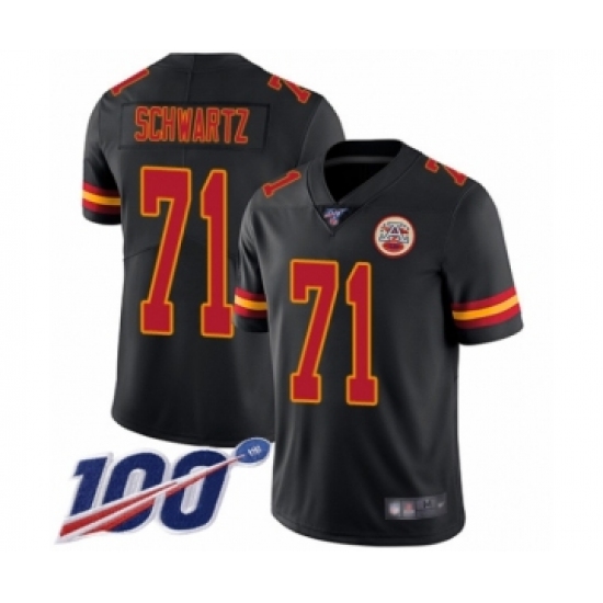 >Men's Kansas City Chiefs #71 Mitchell Schwartz Limited Black Rush Vapor Untouchable 100th Season Football Jersey
