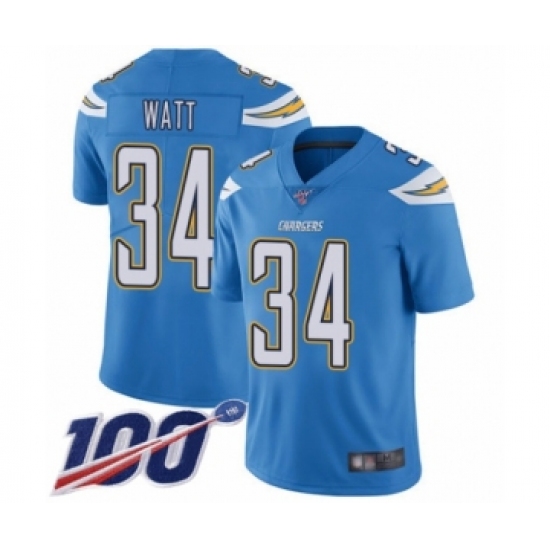 Men's Los Angeles Chargers #34 Derek Watt Electric Blue Alternate Vapor Untouchable Limited Player 100th Season Football Jersey