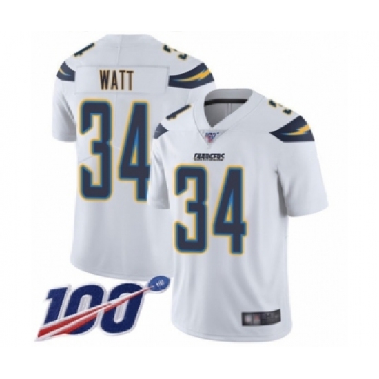 Men's Los Angeles Chargers #34 Derek Watt White Vapor Untouchable Limited Player 100th Season Football Jersey