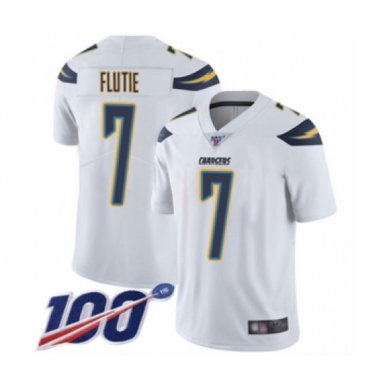 >Men's Los Angeles Chargers #7 Doug Flutie White Vapor Untouchable Limited Player 100th Season Football Jersey