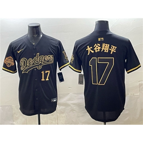 >Men's Los Angeles Dodgers #17 大谷翔平 Black Gold 2025 Back to Back Champions Limited Stitched Baseball Jersey