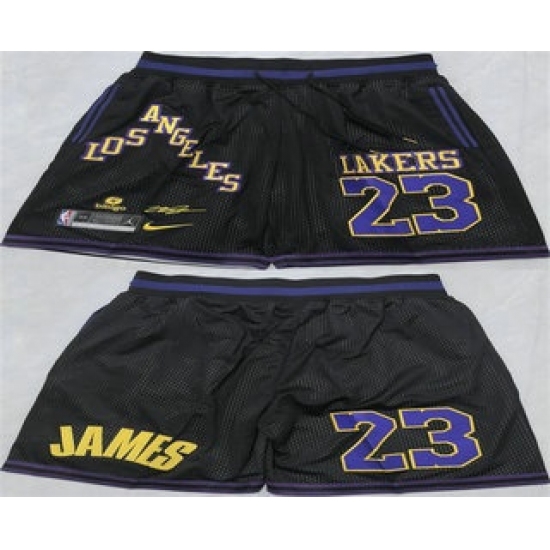 >Men's Los Angeles Lakers #23 LeBron James Black 2025 Shorts