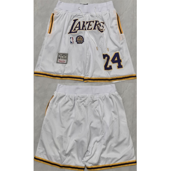 >Men's Los Angeles Lakers #24 Kobe Bryant White 2025 Shorts (Run Small)