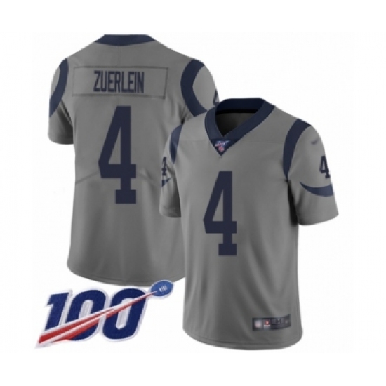 Men's Los Angeles Rams #4 Greg Zuerlein Limited Gray Inverted Legend 100th Season Football Jersey