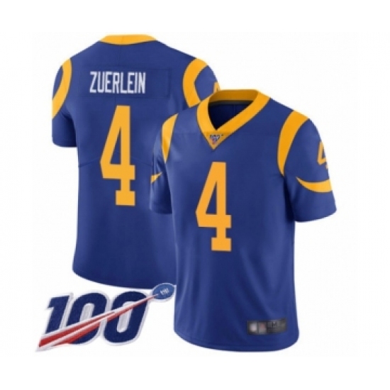Men's Los Angeles Rams #4 Greg Zuerlein Royal Blue Alternate Vapor Untouchable Limited Player 100th Season Football Jersey