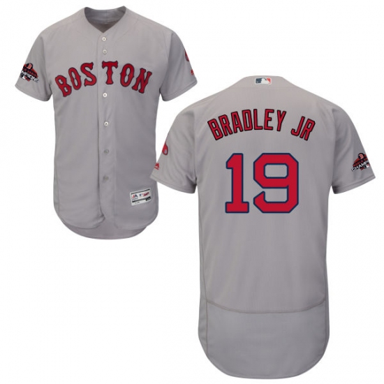 Men's Majestic Boston Red Sox #19 Jackie Bradley Jr Grey Road Flex Base Authentic Collection 2018 World Series Champions MLB Jersey