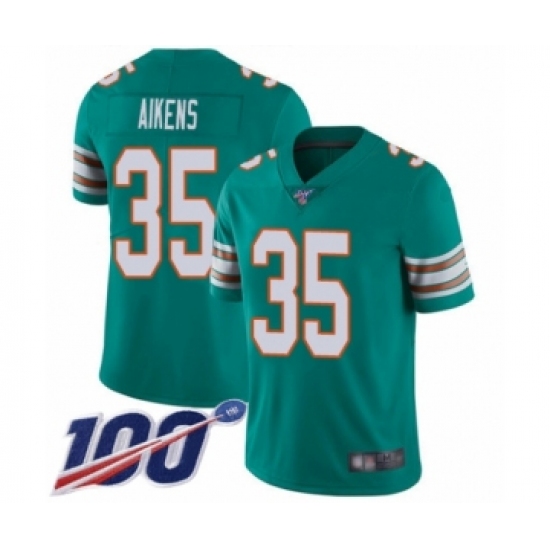 Men's Miami Dolphins #35 Walt Aikens Aqua Green Alternate Vapor Untouchable Limited Player 100th Season Football Jersey