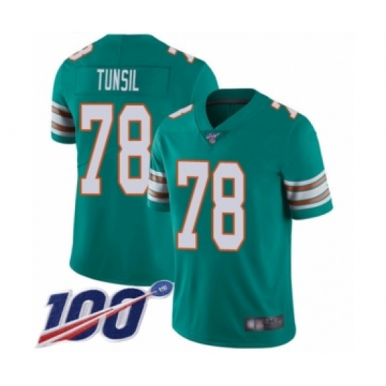 Men's Miami Dolphins #78 Laremy Tunsil Aqua Green Alternate Vapor Untouchable Limited Player 100th Season Football Jersey
