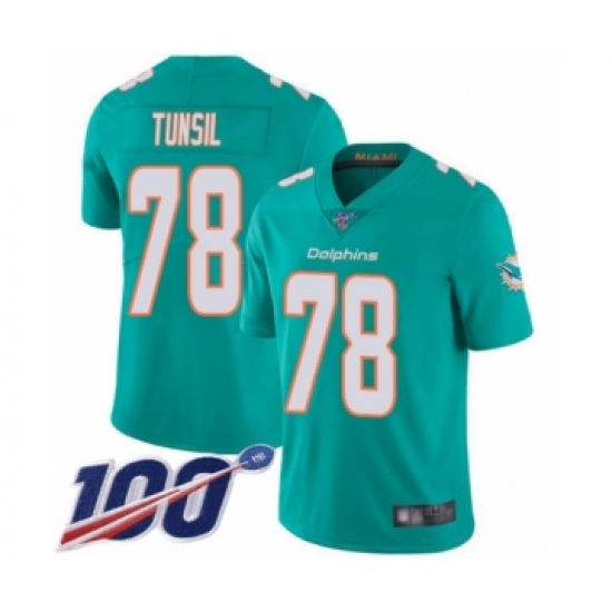 Men's Miami Dolphins #78 Laremy Tunsil Aqua Green Team Color Vapor Untouchable Limited Player 100th Season Football Jersey
