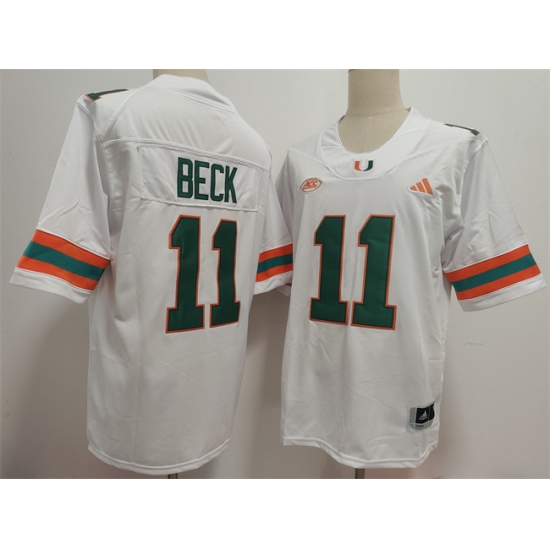>Men's Miami Hurricanes #11 Carson Beck White Stitched Football Jersey