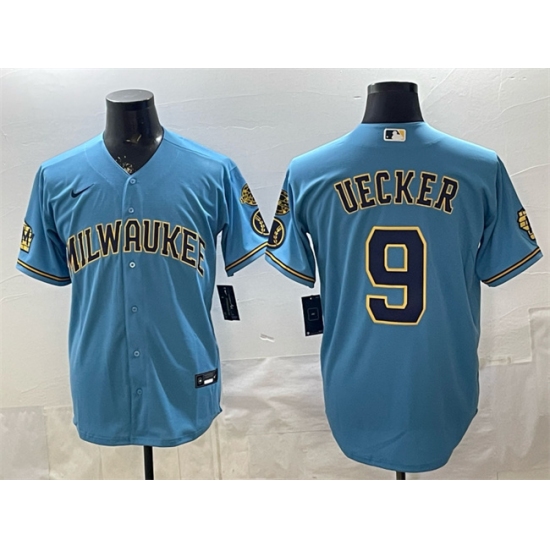 Men's Milwaukee Brewers #9 Bob Uecker Powder Blue City Connect With Cool Base Stitched Jersey