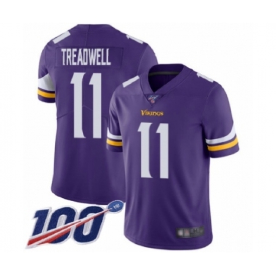 Men's Minnesota Vikings #11 Laquon Treadwell Purple Team Color Vapor Untouchable Limited Player 100th Season Football Jersey