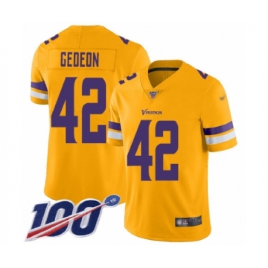>Men's Minnesota Vikings #42 Ben Gedeon Limited Gold Inverted Legend 100th Season Football Jersey