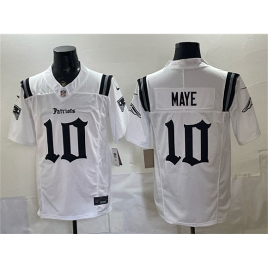 >Men's New England Patriots #10 Drake Maye White F.U.S.E. Gothic Revolution Edition Football Stitched Jersey
