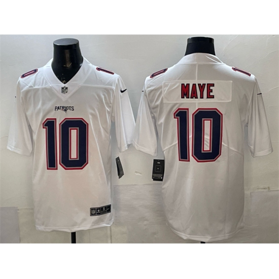 >Men's New England Patriots #10 Drake Maye White Fashion Vapor Untouchable Limited Stitched Football Jersey