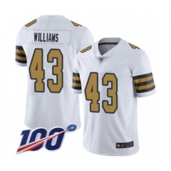 >Men's New Orleans Saints #43 Marcus Williams Limited White Rush Vapor Untouchable 100th Season Football Jersey