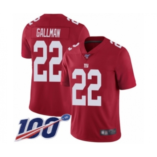 >Men's New York Giants #22 Wayne Gallman Red Limited Red Inverted Legend 100th Season Football Jersey