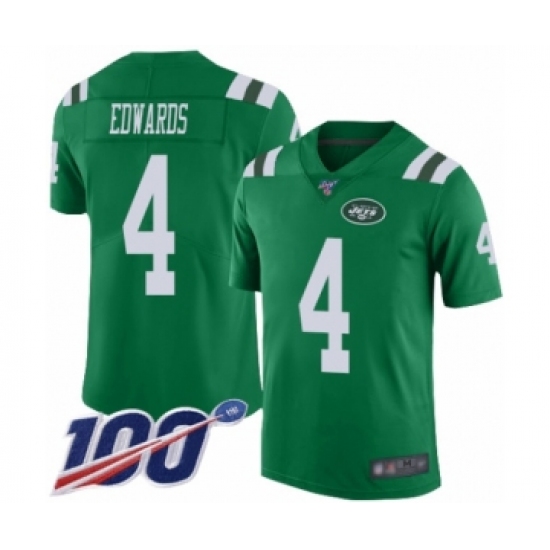 >Men's New York Jets #4 Lac Edwards Limited Green Rush Vapor Untouchable 100th Season Football Jersey