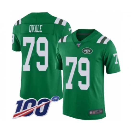 Men's New York Jets #79 Brent Qvale Limited Green Rush Vapor Untouchable 100th Season Football Jersey
