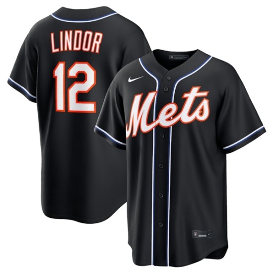Men's New York Mets #12 Francisco Lindor 2026 Black Out Stitched Baseball Jersey