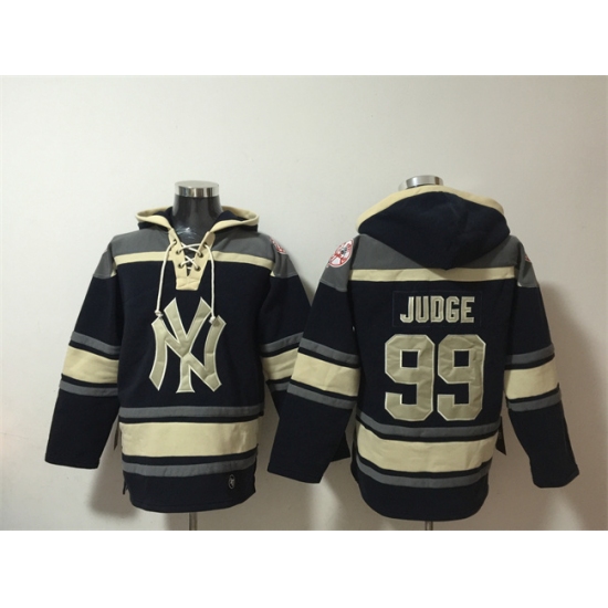 Men's New York Yankees #99 Aaron Judge Navy Ageless Must-Have Lace-Up Pullover Hoodie