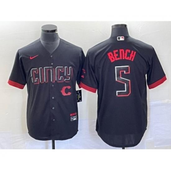 Men's Nike Cincinnati Reds #5 Johnny Bench Black 2023 City Connect Cool Base Stitched Baseball Jersey1
