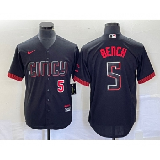 Men's Nike Cincinnati Reds #5 Johnny Bench Number Black 2023 City Connect Cool Base Stitched Baseball Jersey1