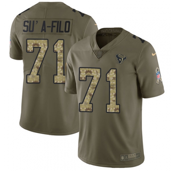Home>NFL>Houston Texans>Xavier Su'a-Filo>Men's Nike Houston Texans #71 Xavier Su'a-Filo Limited Olive/Camo 2017 Salute to Service NFL Jersey