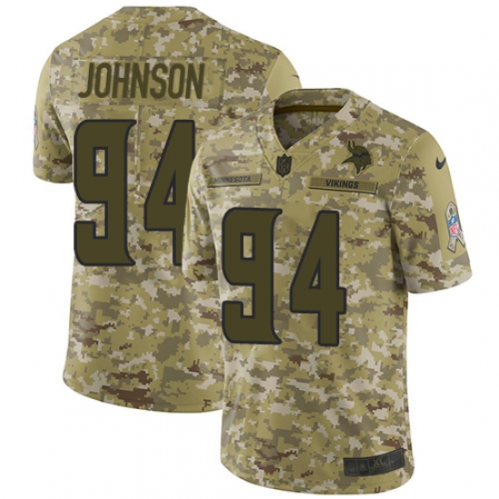 >Men's Nike Minnesota Vikings #94 Jaleel Johnson Limited Camo 2018 Salute to Service NFL Jersey